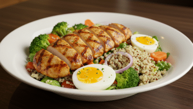 Salada Proteica com Frango Grelhado, Ovo e Grãos: Opção Saudável e Saborosa