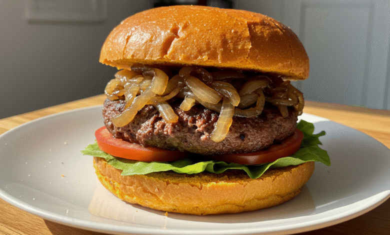 Hambúrguer Caseiro com Pão de Batata Doce e Cebola Caramelizada: Receita Irresistível para um Sabor Inesquecível