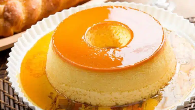 Essa combinação resulta em uma massa cremosa e aromática, que se transforma em um pudim dourado e irresistível após assar no forno.